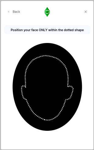 The liveness (selfie verification) page conducts a real-time selfie capture to verify that the user is physically present while verifying their identity.